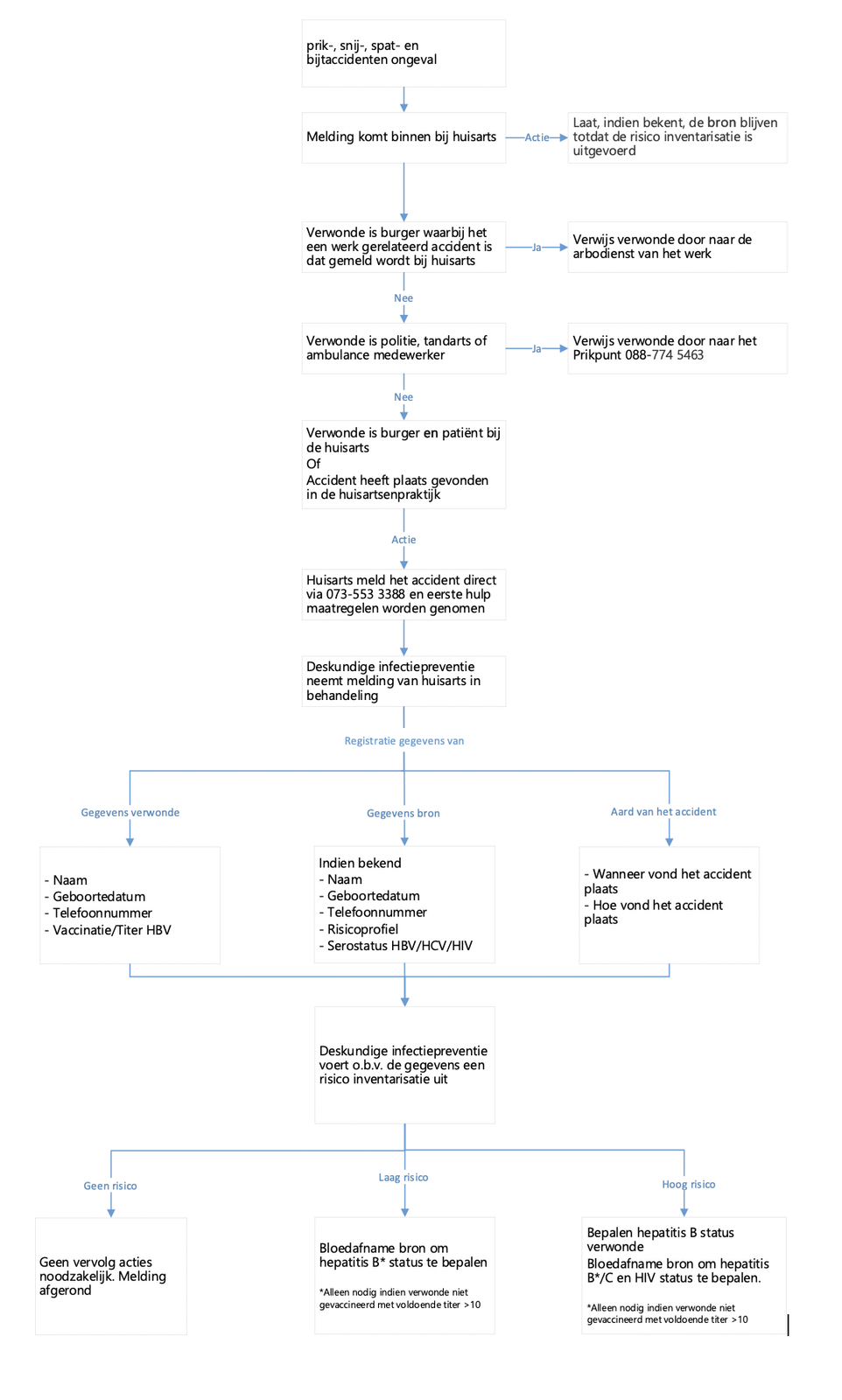 Prikaccidenten is een verzamelnaam voor prik-, snij-, spat- en bijtaccidenten. Bij een prik- of snijaccident komt bloed (of een andere lichaamsvloeistof) van de ene persoon (de bron) via een scherp voorwerp, bijvoorbeeld een injectienaald, vaccinatienaald of scalpel, in het lichaam van een ander persoon (de verwonde). Bij een spataccident betreft het bloed (of een andere lichaamsvloeistof) dat op slijmvliezen of niet-intacte huid terechtkomt. Bij een bijtaccident komt bloed van de gebeten verwonde op mondslijmvlies van de bijter (de bron) of speeksel (al dan niet vermengd met bloed van de bijter) in de open bijtwond van de bron. Via prik-, bijt-, snij- en spataccidenten kunnen bloed overdraagbare virussen hepatitis B-virus (HBV), hepatitis C-virus (HCV) en humaan immunodeficiëntievirus (hiv) worden overgedragen.